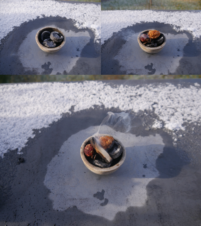 Als es irgendwann wieder hell wart, räucherte ich der Göttin Freyja als Opfergabe u.a. Fliegenpilze, Alraunen-Blätter, Tabak und verschiedene Harze sowie Palo Santo.