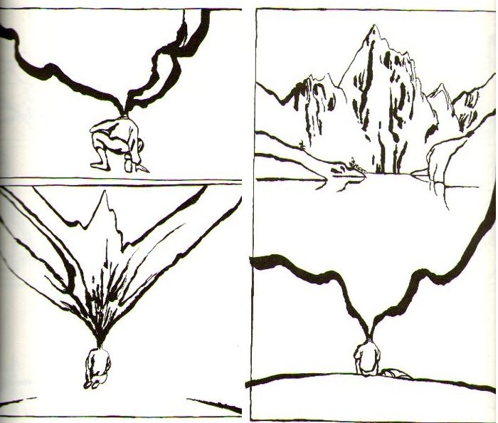 zwischen dem vierten und dem fünften scan gelangt der held durch die verbindung seines selbst mit dem gebirge in den kosmos und reist durch die erd- und menschheitsgeschichte. dies allerdings nur eine zwischenreise seiner reise...