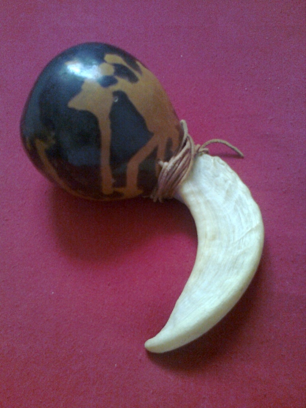 Im Anhang mal mein selbstgebautes Baby, Widderhorn mit Kalebasse und Saamen/Stein Füllung